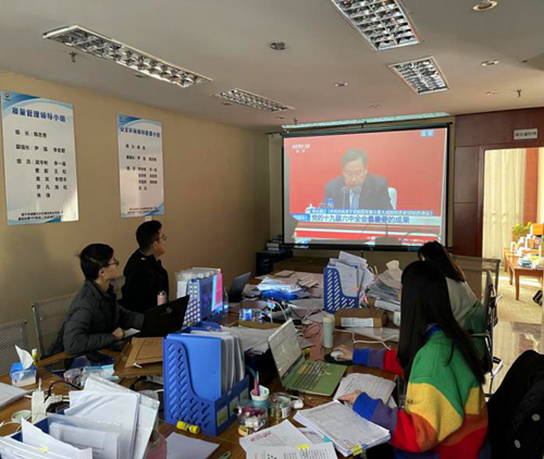 在严格落实疫情防控措施的基础上,环保产业集团各级党组织结合企业实际,组织党员干部职工以集中收看、自行收看的方式,收看了中共中央介绍党的十九届六中全会精神新闻发布会,全面启动深入学习贯彻党的十九届六中全会精神重点工作。