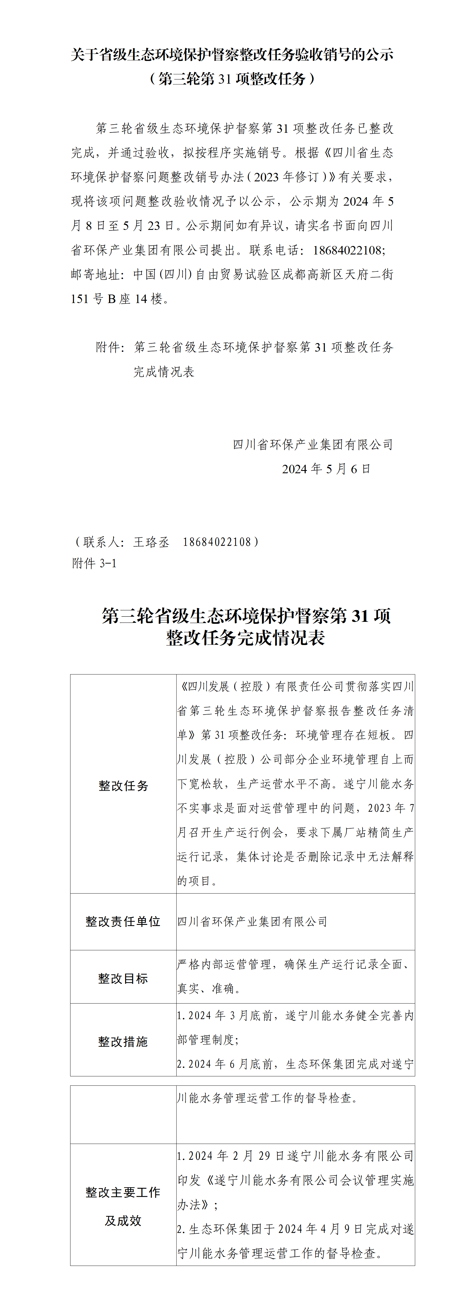 上一条:关于省级生态环境保护督察整改任务验收销号的公示 (第三轮第33项整改任务)