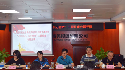 7月12日,川能水务召开“不忘初心、牢记使命”主题教育专题党课暨集中学习会,公司党支部书记、董事长、总经理张忠武讲授了题为《不忘初心?牢记使命 奋力谱写川能水务高质量发展新篇章》专题党课,并组织开展“不忘初心、牢记使命”主题教育集中学习会,公司全体党员干部职工参加会议。