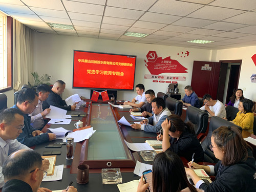 近日,中共眉山川能投水务有限公司支部委员会召开了党史学习教育第一专题会,认真组织学习了党中央、省委省政府、能投集团党委和环保产业集团党委关于党史学习教育相关重要文件、讲话精神。公司党员干部共计23人参加了会议。