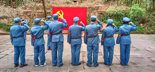 活动中,党员们穿军装、扛旗帜、扎丝带,在讲解员的引导下,通过走访革命先烈起义遗址、祭奠先烈、重温入党誓词等实地参观践行活动,进一步弘扬爱国主义精神和民族精神,切实增强“四个意识”,坚定“四个自信”,做到两个维护。
