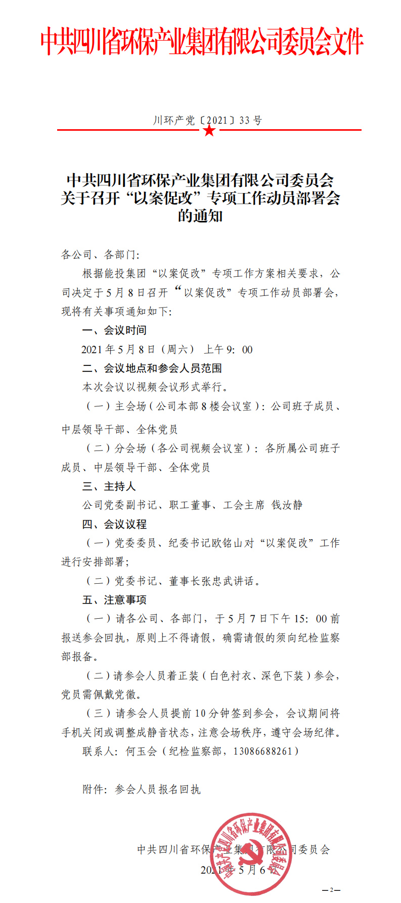 中共四川省环保产业集团有限公司委员会关于召开“以案促改”专项工作动员部署会的通知